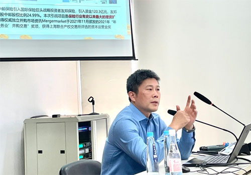 2022年10月21日上午,第159次北大赛瑟(CCISSR)双周讨论会于yl23455永利官网305会议室举行。中邮人寿保险股份有限公司财务总监谢祝锋先生以“财务视角看寿险公司经营逻辑”为题,结合工作经验为大家讲解了寿险公司的经营实务。本次讨论会由风险管理与保险学系朱南军老师主持,风险管理与保险学系部分师生参加了本次讨论会。