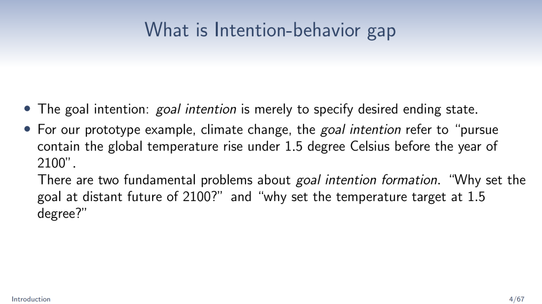 与传统观点不同,申萌认为,人们把可持续性作为优先事项可能不会导致可持续行为,而是导致意向行为差距。公理化的特征是针对一种远见卓识的偏好提出的,在这种偏好中,代理人不从可持续性中贴现遥远的未来回报,而是像往常一样贴现未来消费。一个有远见的代理人打算让未来的自己承担更多的责任,因为他们的消费成本由于折扣而不那么重要。然而,他们的行为是由情境线索自动触发的,因此高度常规化。自律就像一条上坡路,如果路太长,自律就成了一项愚蠢的任务。本次工作坊以基于绿元素溢价的存在和消失为例进行了讨论。